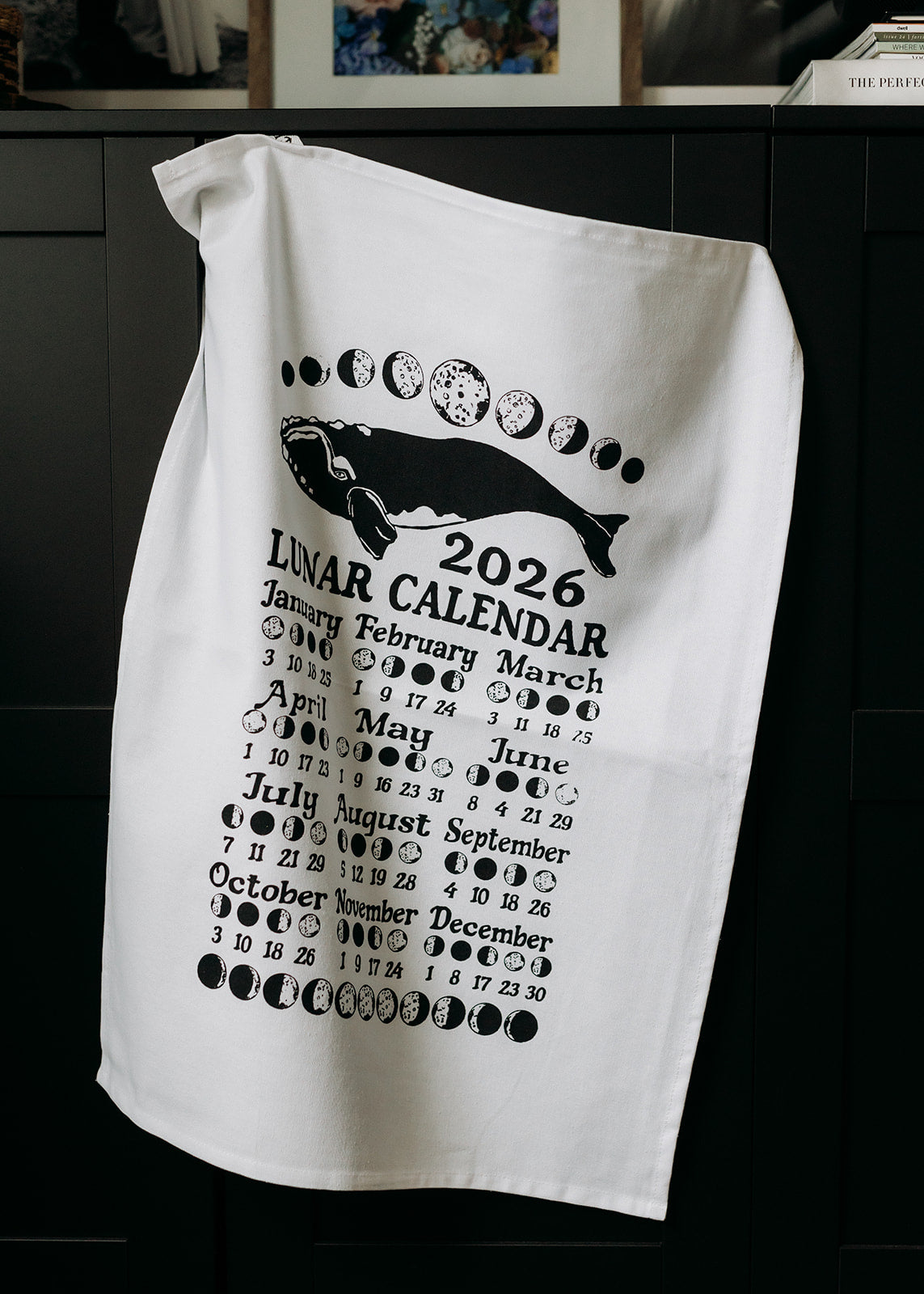 2026 lunar calendars are printed on our cotton tea towels and locally sourced vintage cardstock, so you can use your art or just enjoy looking at it! Either way, you'll know exactly what the upcoming year has in store.
