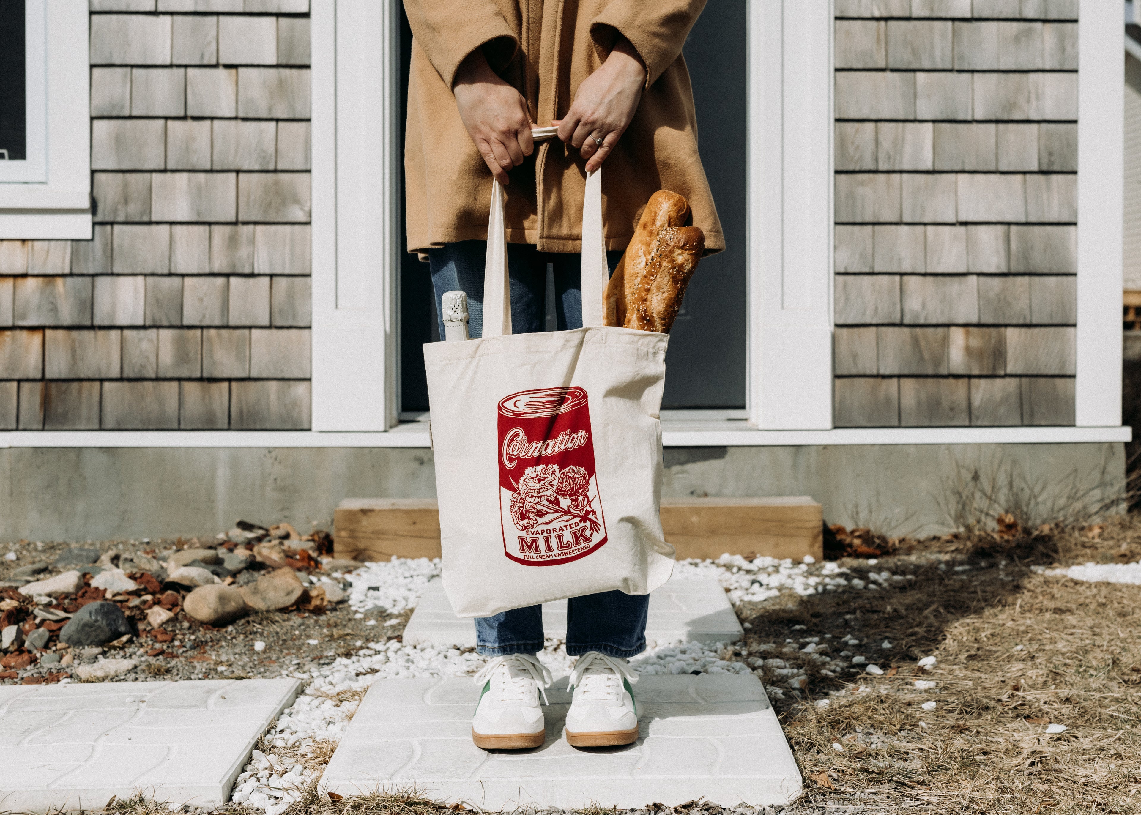 These tote bags have ample room for all your shop treasures and they're durable enough to support you in your travels. Each design is printed with water-based ink for a light-weight, resilient finish.