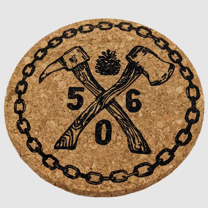 These coasters are an homage to the hard-working people of our province who aren't afraid to get their hands dirty. Decorated with a fir cone and chain, the axe and picaroon celebrates our 506 heritage!