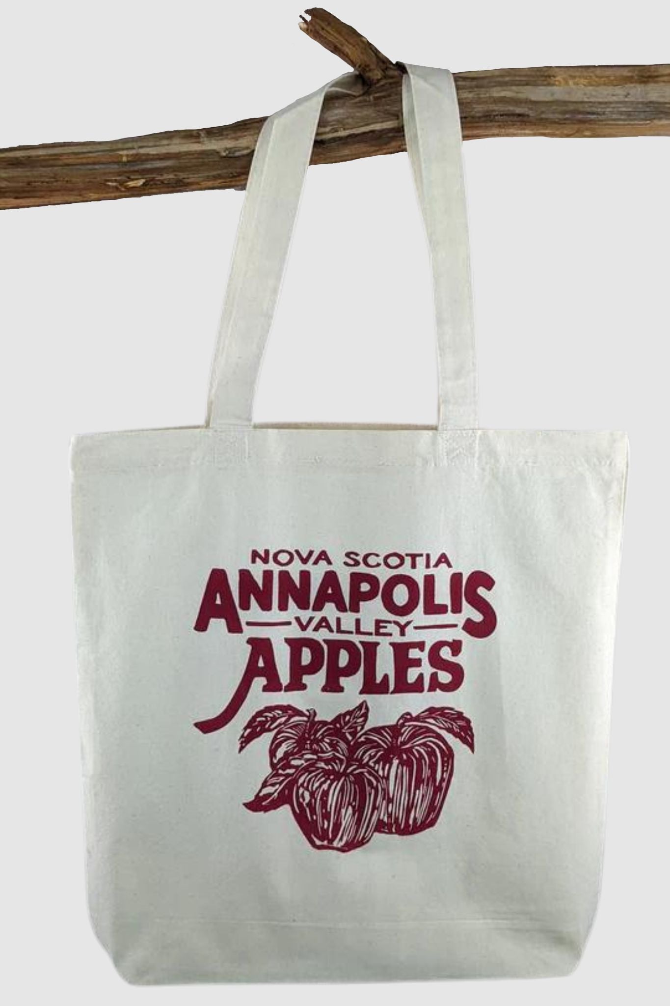 The Annapolis Valley is home to many apple orchards, and is one of the largest apple-producing regions in all of Canada. They produce many different types of apples, including McIntosh, Cortland, Honeycrisp, and Gala, among others. These tote bags are almost as good as those fall trips to the orchard!