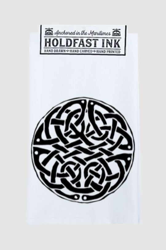While traditional Celtic knots signify an unending, continuous line, my knot signifies the beginnings and endings in life that challenge us all. Starts and stops, hellos and goodbyes, birth and death. These tea towels remind us of the cycles of life!
