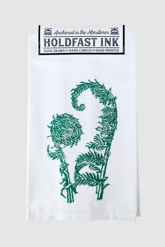 Fiddleheads are the furled young shoots of fern plants that are harvested and eaten. Both beautiful and delicious, these are a Maritimes must-have—as well as Southern Québec and Southern Ontario. They're always in season with these tea towels!