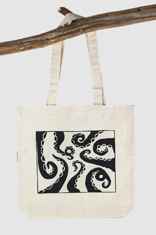 Octopi are fascinating creatures with eight arms, each lined with suckers that they use to anchor their bodies, manipulate objects, and investigate their environment. These tote bags show love for the wiggly creatures of the sea!