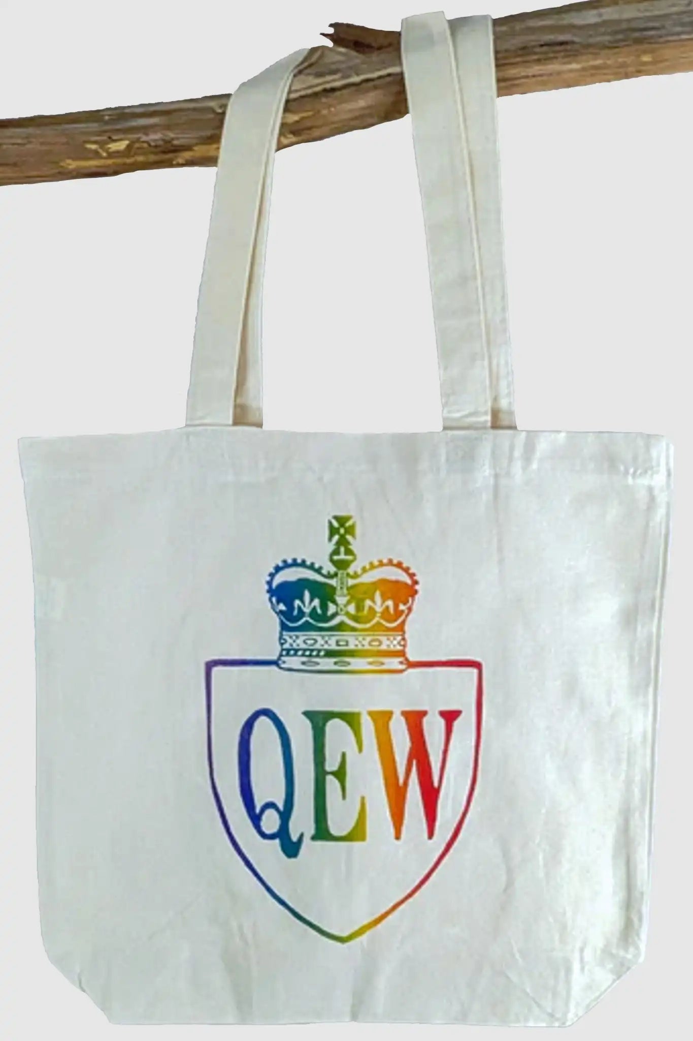 Queen Elizabeth Way, or the QEW, is a major highway system in Ontario connecting Toronto to Niagara Falls and Buffalo, New York in the United States. These tote bags are synonymous with south eastern Ontario and the icon itself. It was named for royalty, after all!